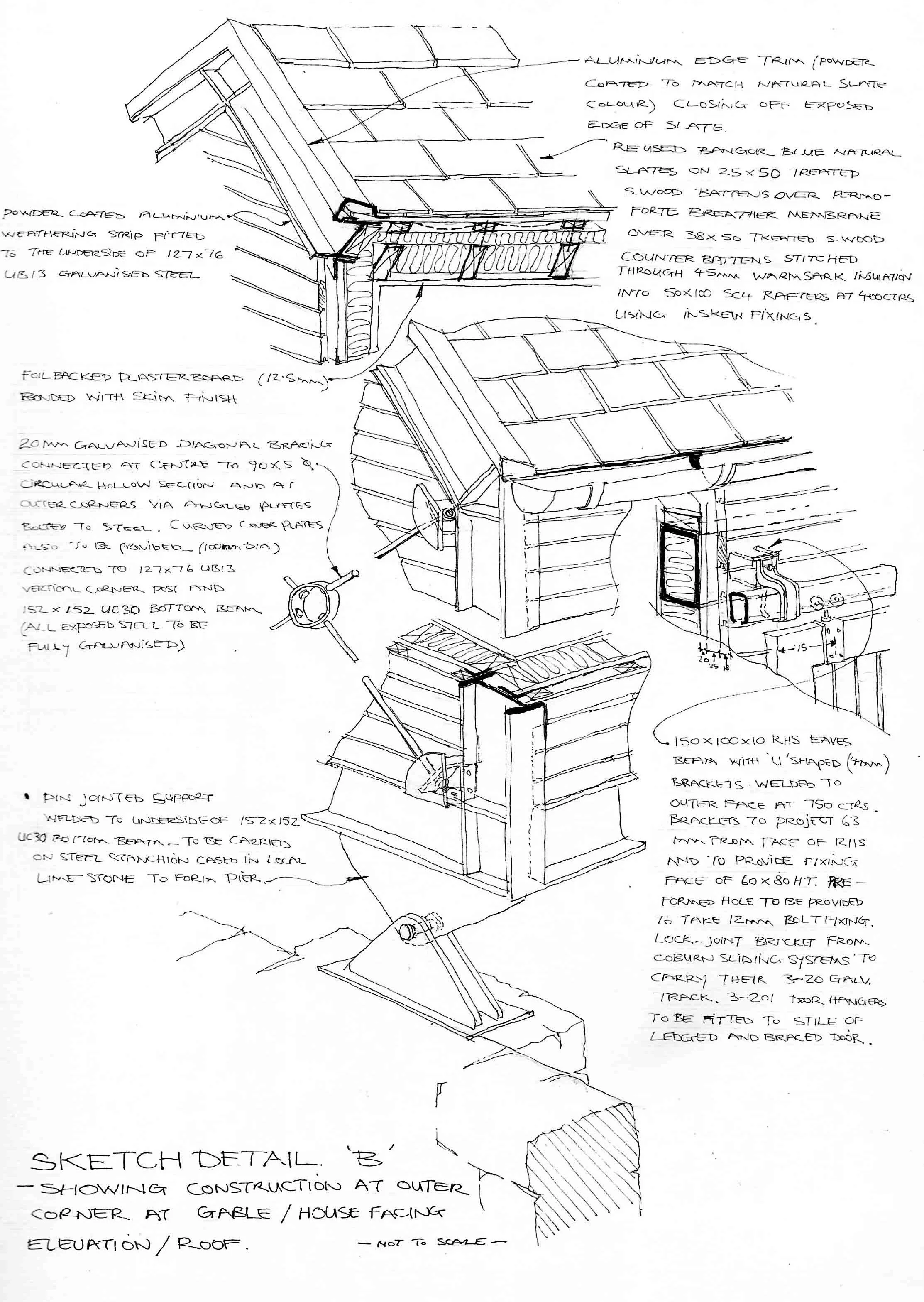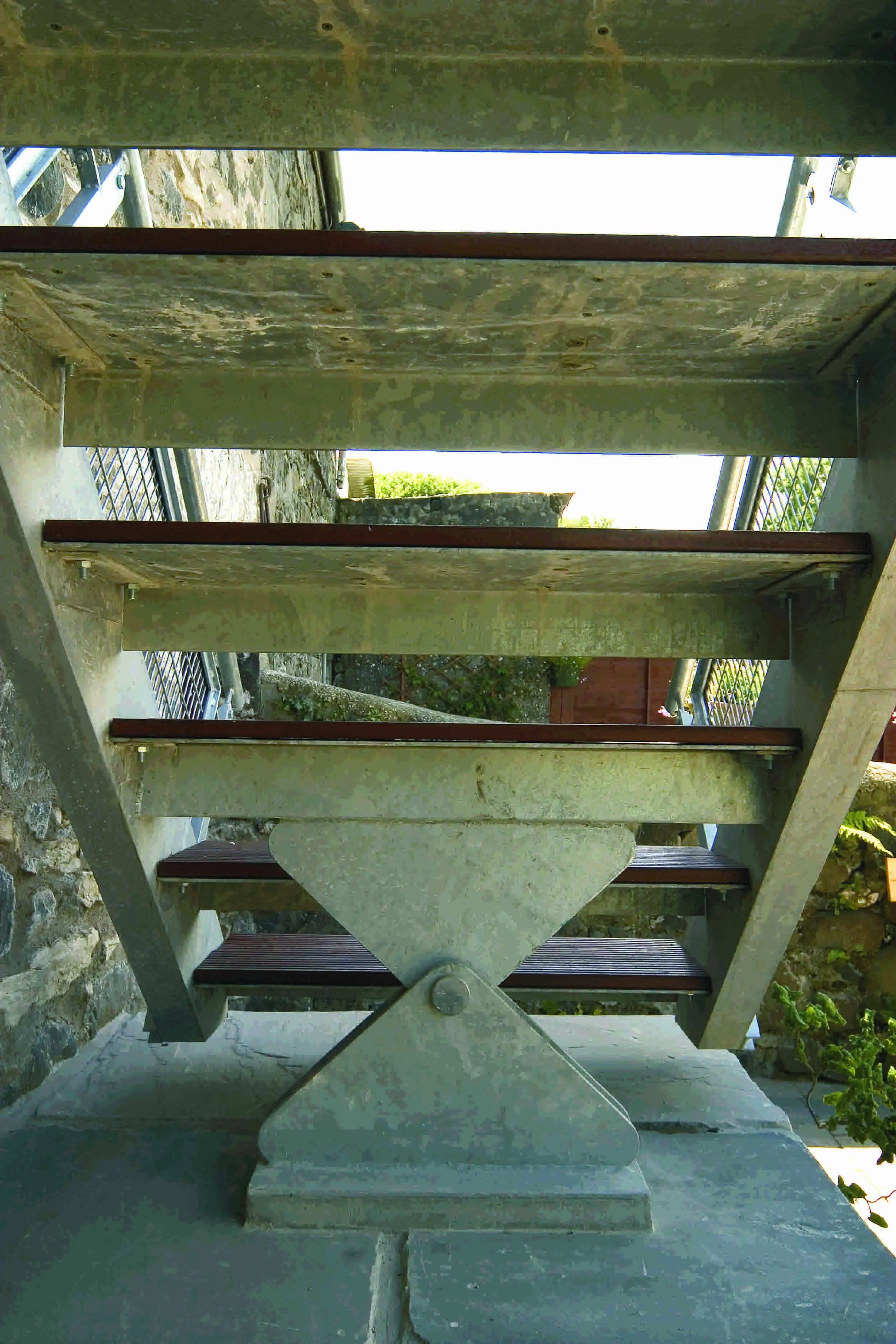 The clients were keen to explore the potential of a dilapidated stone barn at the back of their garden that had at one time been used as a schoolhouse. A cedar-clad extension was built at first floor level which doubled the area of the existing accommodation to create a versatile annex to the rear of this listed building. The living accommodation is accessed externally via a galvanised steel stair with a landing that offers striking views over Glenarm Bay.