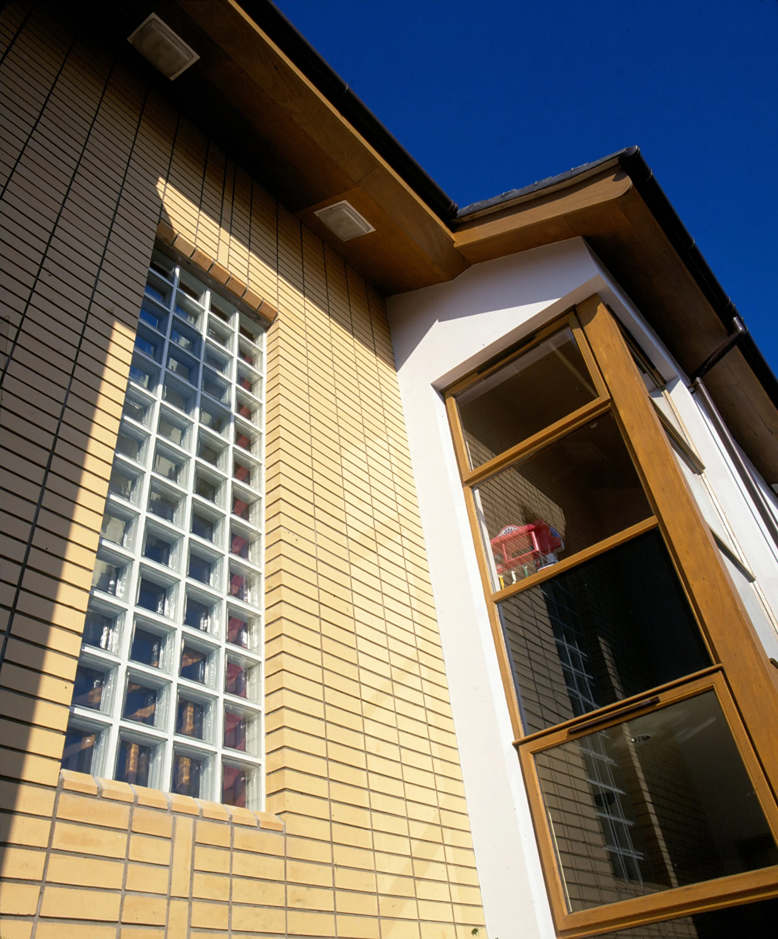 Located within a large garden this detached family home with its top lit two storey entrance hall features glass block screens set into stack bonded brickwork. A decked area adjacent to the conservatory provides a sheltered outdoor space from where views over the garden and the surrounding countryside can be enjoyed.